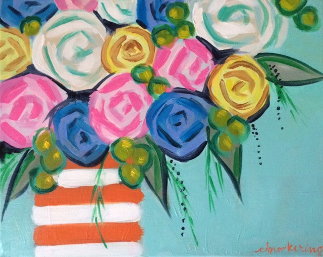 Join us to paint this playful striped vase with a lovely flower bouquet